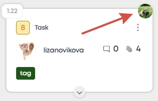 Hover the cursor over any avatar in the corner of the card to see the user's name.